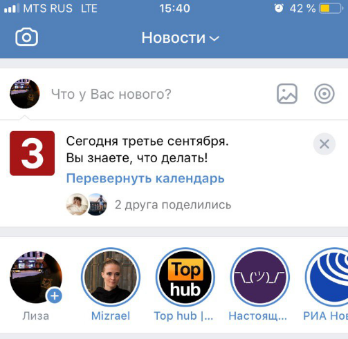 Социальная сеть «ВКонтакте» предложила перевернуть в ленте новостей календарь всем пользователям.