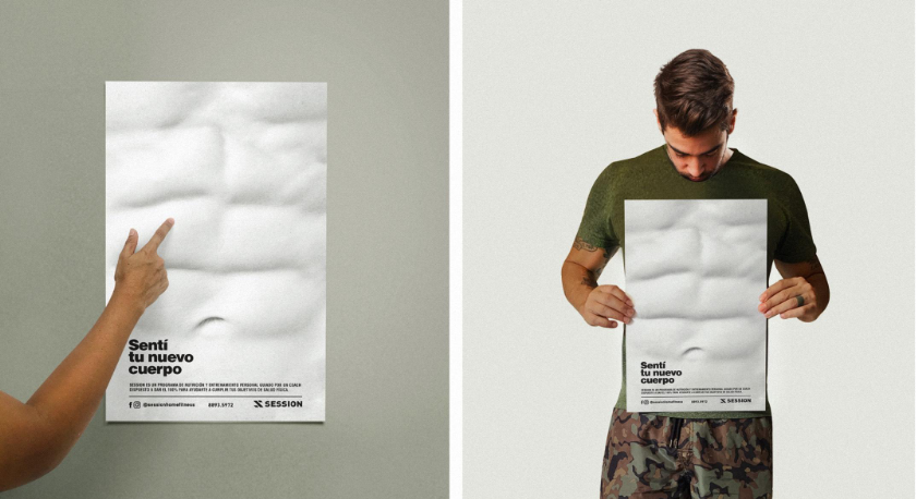 Компания выпустила рекламные постеры, на которых был изображен мужской пресс с «кубиками». Слоган гласит «Прикоснись к своему новому телу». Так создатели кампании привлекли внимание к программе личных тренировок и готовых рационов питания, которые предлагает Session.
