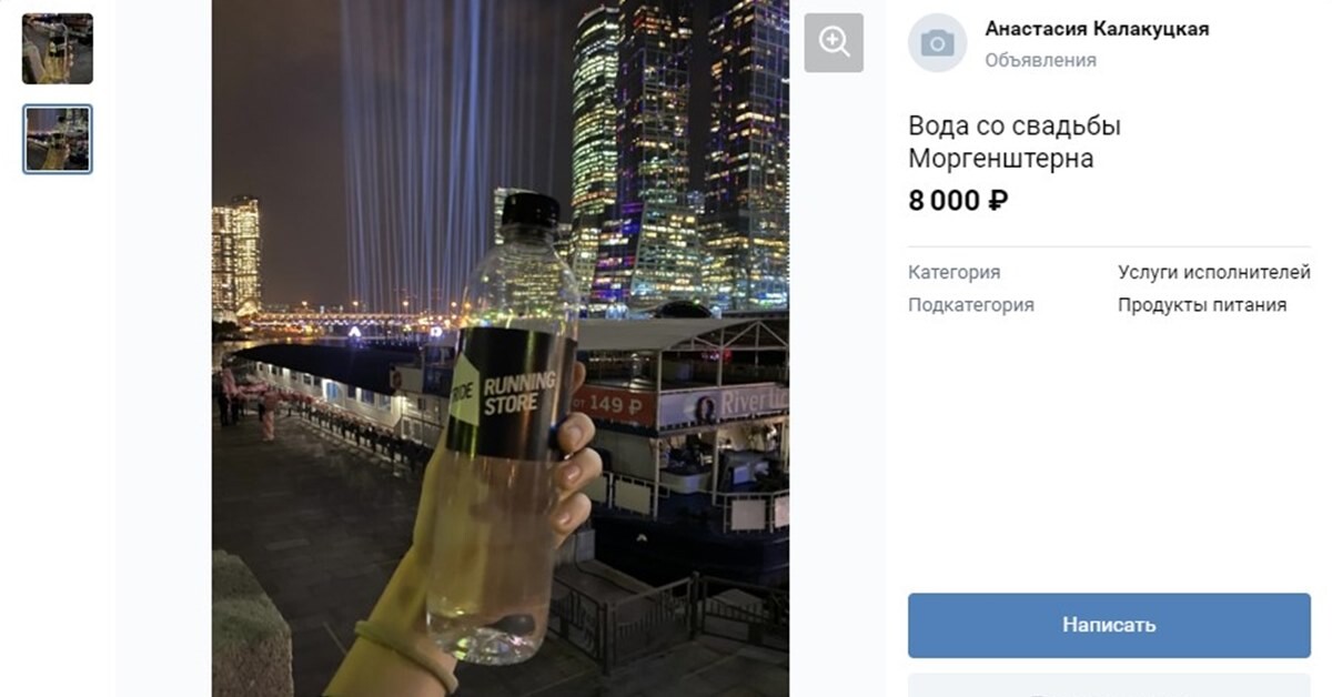 В «Объявлениях» VK выставили на продажу воду со свадьбы Моргенштерна