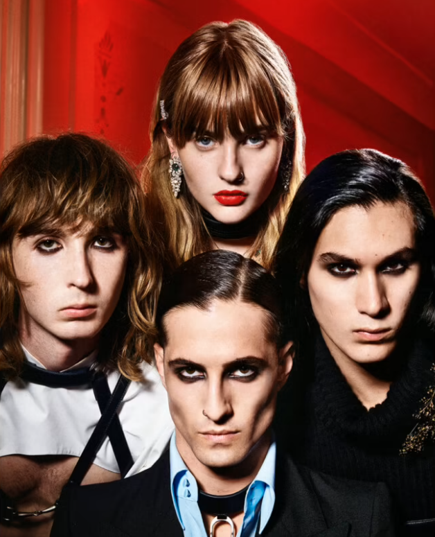 Бренд Gucciзапустил провокационную кампанию с участиемитальянской рок-группы Måneskin. Креативный директор Алессандро Микеле личновыбрал артистов для продвижения коллекции Gucci Aria.