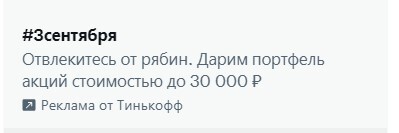 «Тинькофф» уже традиционно «перевернул» календарь в своем приложении. А еще запустил в Twitter рекламу по хештегу #3сентября.