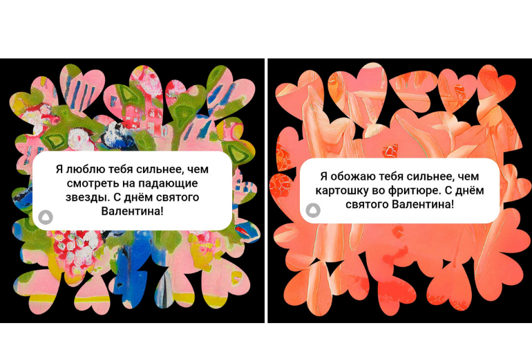 «Яндекс» научил голосового помощника «Алису» генерировать поздравления сДнем святого Валентина. Для этого в поисковой строке нужно ввести запрос«валентинки от Алисы» или озвучить помощнику голосовую команду «Алиса, сочинивалентинку». Текст поздравления и картинка создаются нейросетями.