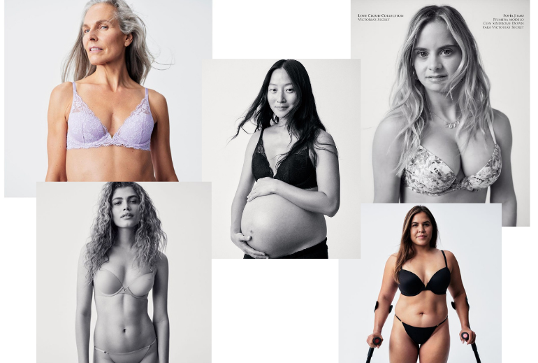 Бренд Victoria’s Secret выпустил новую коллекцию белья The Love Cloud дляженщин разных форм, размеров и происхождения. В рекламе снялись как топ-модели(Хейли Бибер, Адут Акеч), так и нестандартные модели, напримерпредставительница направления plus size Палома Эльсессер, первая трансгендернаямодель бренда Валентина Сампайо, пуэрториканская модель с синдромом Дауна СофияХирау и модель старшего возраста МариЭнн Элизабет.