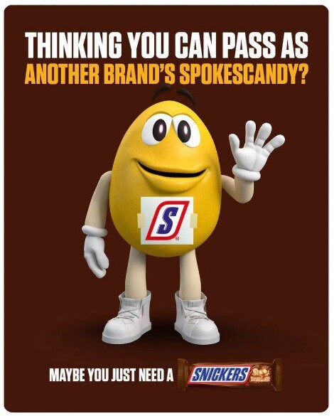 К среде шоколадный бренд объявил о еще большем количестве изменений, в томчисле о том, что маскот Желтый нашел пристанище в кампаниях Snickers, аОранжевый выпустил медитативный плейлист Spotify. В итоге отказ от маскотовобернулся рекламной кампанией M&M's, приуроченной к Суперкубку.