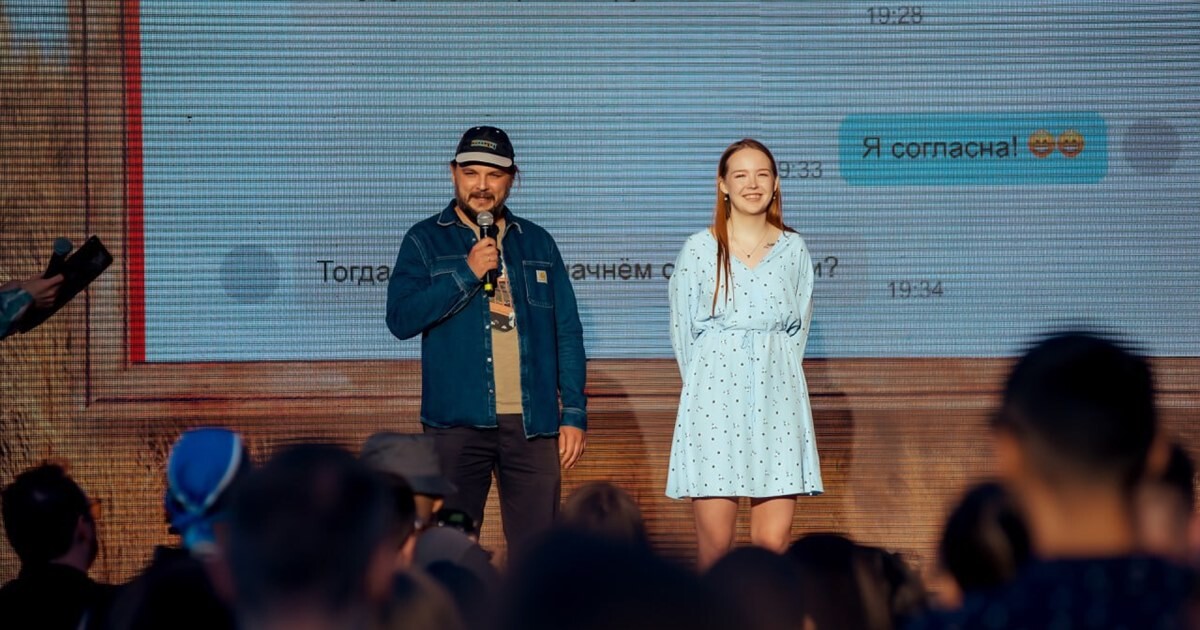 История пары такова: Вячеслав делал уборку дома, решил избавиться отспортивного инвентаря и продать свою гирю. Объявление заинтересовало Викторию.Девушка написала, что готова купить гирю. Вячеслав не медлил — тут же сделалпредложение. Позже он опубликовал эту романтическую историю и сказал, чтомечтает сыграть свадьбу в офисе «Авито». Пару позвали на летний корпоратив, входе которого им объявили: торжество устроят. При этом все нужное для церемониирешили найти на «Авито».