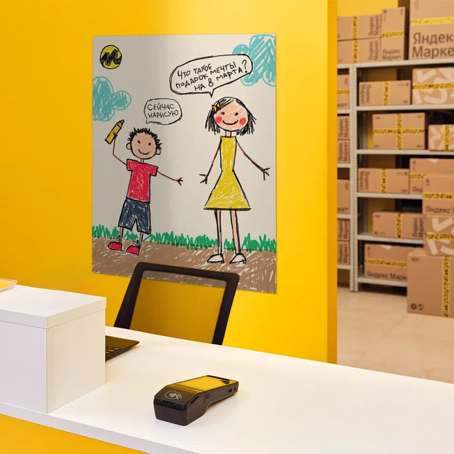 «Яндекс Маркет» преобразит видеоэкраны в своих пунктах выдачи заказов ипокажет на них детские рисунки. В рамках проекта «Это дети натворили»маркетплейс запустил конкурс, где каждый ребенок нарисовал подарок мечты к 8Марта: для себя, мамы, сестры или бабушки. Рисунки участников можно будетувидеть на странице конкурса, они появятся на видеоэкранах ПВЗ в Москве иСанкт-Петербурге.