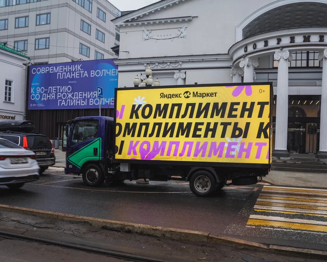 В честь 8 Марта по Москве будут курсировать брендированные грузовики «ЯндексМаркета», которые подарят хорошее настроение жительницам города. До 6 мартаяркий фургон останавливался перед случайными прохожими, чтобы запечатлеть их накамеру и сделать видео с комплиментами.