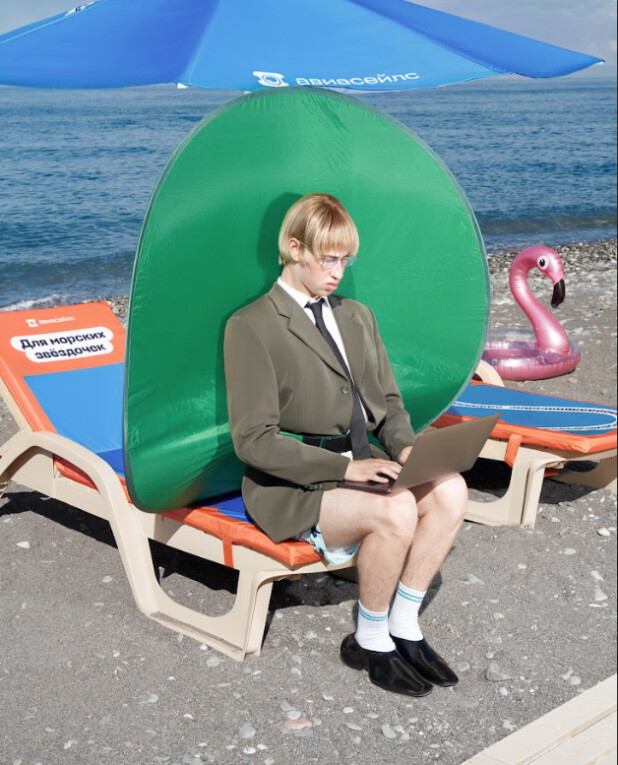 Чтобы привлечь внимание к брендированной зоне, «Авиасейлс» провел в нейфотосъемку в стиле глянцевых журналов с не совсем типичными отдыхающими.