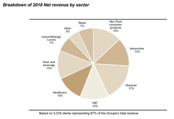 Большую часть выручки холдингу приносят бренды из финансового сегмента, который составил 17% в структуре выручки компании. По 13% заняли: TMT (технологии, медиа и телеком), авто, непищевые потребительские продукты, еда и напитки.