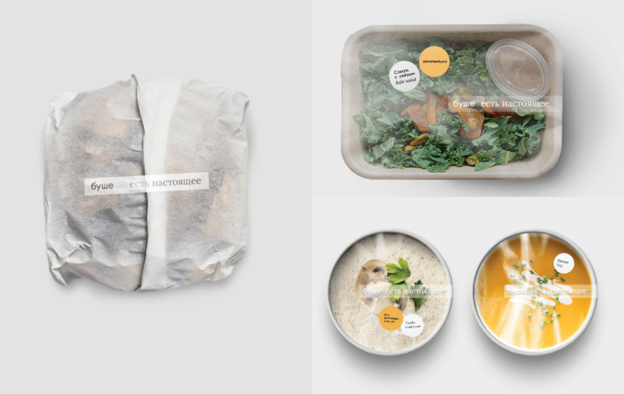 Петербургская сеть кафе Bushe попала в номинацию заавторский дизайн упаковки, разработкой которой занималось инхаус-подразделение.Компания пропагандирует защиту окружающей среды и продает экологически чистыепродукты.