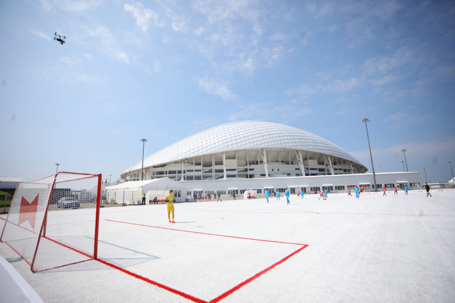 Производитель пива Bud вместе с агентством Bootleg Moscowпереработали 2,5 т пластика для покрытия нового футбольного поля в Сочи. Напереработку отправились использованные пластиковые стаканы из-под пива. В итогеполучилось белоснежное поле.