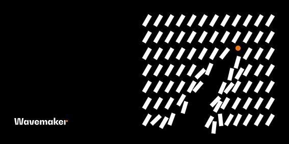 Новый логотип Wavemaker — два белых блока под наклоном с оранжевым шариком на черном фоне. В изображениях с полным названием агентства этот шарик является продолжением последней буквы — «r». Анимированная версия показывает прыгающий мяч, разбивающий белые блоки. Wavemaker частично провело ребрендинг инхаус с помощью digital-магазина WPP Mirum, разработкой визуальной айдентики занималось также агентство NB Studio.