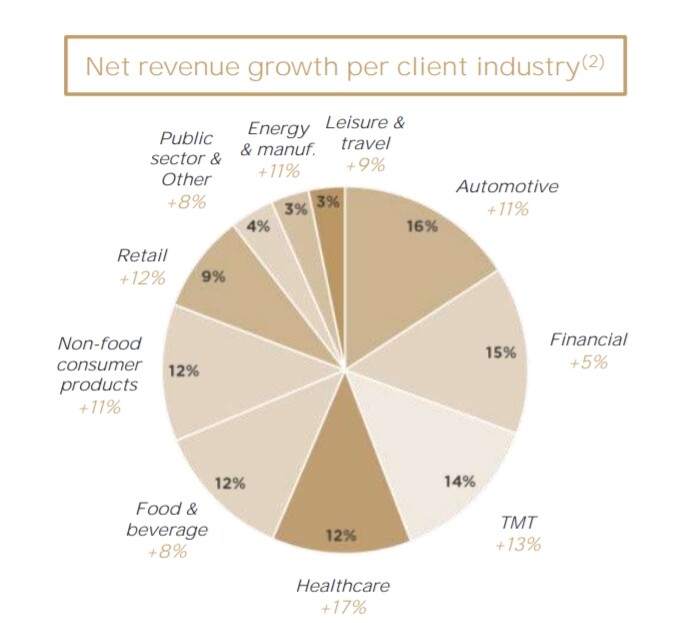Россия вошла в список стран, обеспечивших двузначный органический ростPublicis Grope в Центральной и Восточной Европе за октябрь — декабрь 2021 г.Динамика составила 18,1% в годовом выражении, к 2019 г. показатель вырос на 4%.Об этом говорится в презентации компании поитогам отчетного периода. Драйверами роста в регионе такжестали Румыния и Польша.