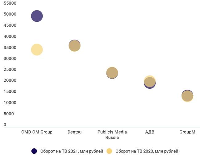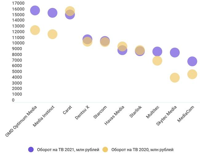 Лидирующее в ТВ-закупках в 2017-18 годах агентство Starcom в 2021году осталось на 5 месте, как и годом ранее.