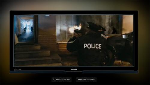 На сайте http://www.cinema.philips.com можно ощутить все плюсы телевизора, на примере фильма, специально снятого для этих целей. Единственный его минус — полная вторичность. Ничего, кроме эстетики «Схватки» и «Темного рыцаря», в фильме нет. Но, с другой стороны, кому сейчас нужна оригинальность? Зато исполнение выше всяких похвал. Сложнейшая техника оправдывает себя на все сто. Цельная история, уложившаяся в 10 минут, буквально захватывает своей эстетикой.
