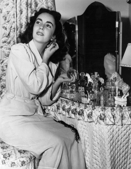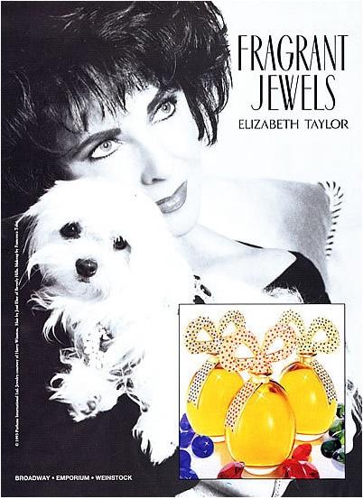На старой черно-белой фотографии Тейлор сидит за столом с множеством парфюмерных флаконов и втирает драгоценные капли в мочки ушей. Актриса признавалась, что ни одного дня не обходилась без парфюма. Тейлор рассказывала, что прежде, чем она начала создавать ароматы для Parfums International, принадлежащий Cheeseborough-Ponds, она мечтала о создании своего собственного парфюмерного бренда 25 лет.