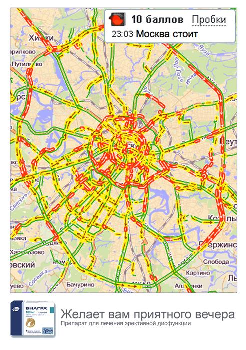 Москва стоит с Viagra. В «Яндекс.Пробки» появилась реклама для поднятия потенции?