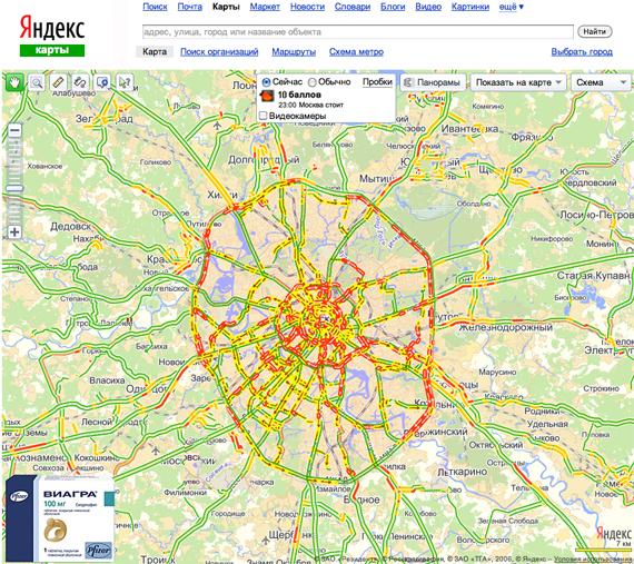 В сети появились изображения рекламы Viagra на ресурсе Яндекс-пробки.