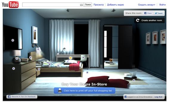 Еще один кейс Ikea – персонализированная спальня. Причем, это не приложение на Facebook и не промо-сайт, а спецпроект на YouTube