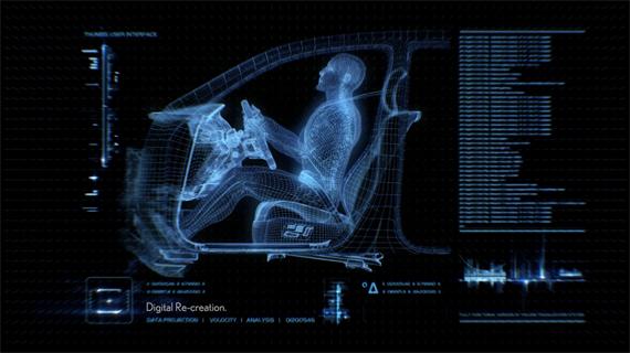 Сначала мы видим лишь темный экран. Затем появляется цифровая модель человека, созданная из 119 световых лучей, которая движется в пространстве так, будто бы она едет на невидимом автомобиле. Затем появляется еще один искусственный человек, более ярко и детально прорисованный и состоящий уже из 2 тысяч световых лучей. Мы видимо его кости, мышцы и органы. Две модели соединяются, после чего замедленная съемка показывает, что нет никакой разницы между обычным краш-тестом и цифровой имитацией аварии, применяемой в Lexus. Реклама призвана проиллюстрировать, как электронная тест-модель позволяет автопроизводителю изучить реакцию человеческого организма на столкновение и дает возможность разрабатывать передовые технологии безопасности.