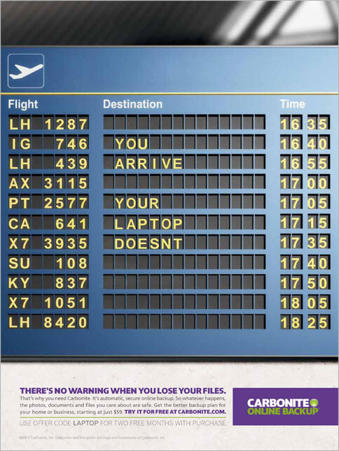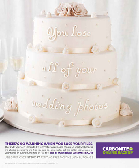 Очередная работа Arnold для Carbonite. Дело происходит на свадьбе, и родственники жениха и невесты свистящим шепотом предупреждают их о том, что они вот-вот все потеряют. Напряжение сохраняется до того момента, как друг пары (на самом деле, очевидно, бывший парень невесты) врывается в церковь и выкрикивает: «Вы потеряете все свои файлы»!