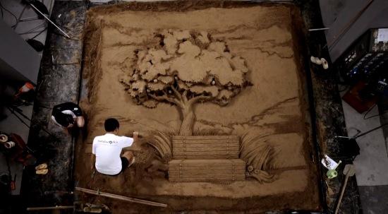 В то время, когда другие чистящие бренды коммуницируют идеальную белизну и легкость очистки грязных вещей, OMO говорит своей аудитории: 'Грязь - это хорошо'. Детям свойственно пачкаться, пусть они растут свободными, естественными и живыми, все равно OMO отстирает их запачканную одежду. К разработке рекламной кампании авторы привлекли 3-кратного чемпиона мира конкурсов песочных скульптур - художника JooHeng Tan.