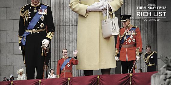 В печатной рекламе списка Rich List (посвященного самым богатым людям Британии) рост людей на фотографии был пропорционален их состоянию. Этому постеру, на котором представлены члены британской королевской семьи, достался персональный лев.