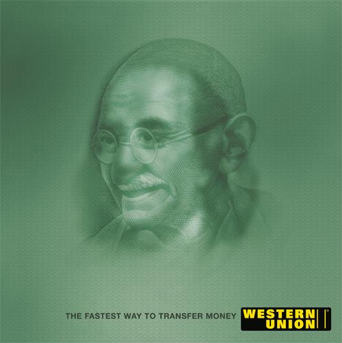 Оригинальные постеры с портретами глав мировых государств, изображаемых также на национальной валюте, были установлены вдоль дорог в Индии. Чтобы подчеркнуть скорость денежных переводов Western Union, портреты сменяли друг друга: Мао Цзедун (китайский юань) превращался в Елизавету II (британский фунт); Авраам Линкольн (купюра в $5) становился королем Фадхом (саудовский риал); а Бенджамин Франклин ($100) - Махатмой Ганди (индийская рупия).