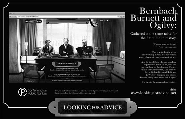 На Looking For Advice посетители могут получить хорошие советы от знаменитых деятелей рекламы прошлого века: Лео Бернетта, Дэвида Огилви и многих других. Посетители также могут присылать цитаты с указанием авторства.