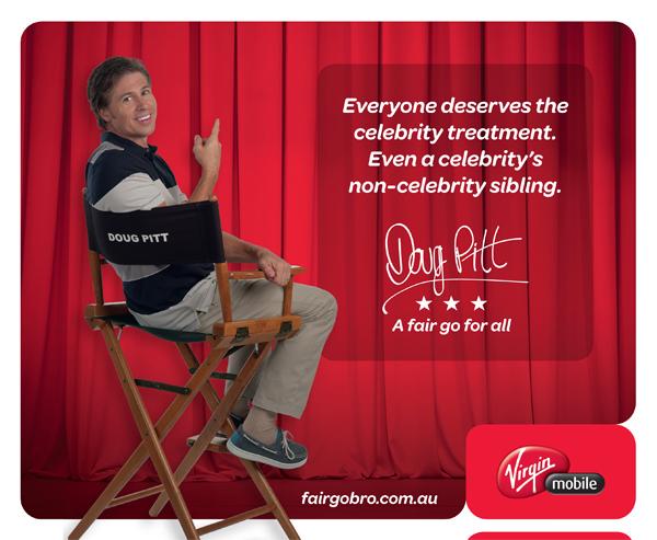 Брат голливудского актера Брэда Питта, Дуг, снялся в необычной рекламной кампании Virgin Mobile под названием Fair Go Bro (Честный ход, брат).