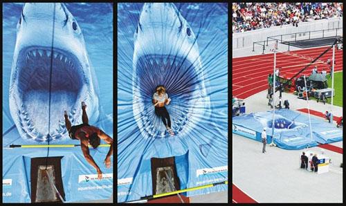 На соревнованиях по легкой атлетики, которые проходили в Берлине, прыгуны прыгали прямо в пасть к акуле.