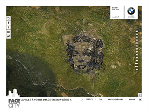 BMW запустила довольно изящный микросайт, на котором можно зарегистрироваться с помощью Facebook. Затем туда можно было загрузить свой портрет, на основе очертаний которого строился компьютерный город, а BMW 1 Series затем проезжала по его улицам. Пользователи могли дать своему городу название и поделиться информацией о нем с друзьями, которые, в свою очередь, «строили» собственные города. Закадровый саундтрек также был составлен на основе музыкальных предпочтений пользователей Facebook. За месяц сайт посетило 300 тысяч человек и было построено 390 «городов».