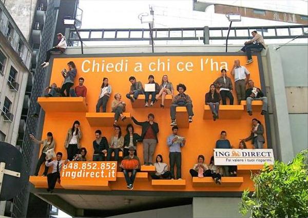 В конце 2010 года похожие билборды были размещены в центре Милана, а рекламировались на них услуги исследовательской компании ING.