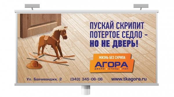 Скрипучая дверь в офисе, скрип сиденья Вашего автомобиля или старой кровати за стеной гостиничного номера, и многое другое. Каждый раз, слыша эти звуки, Вы сбиваетесь с толку и вспоминаете сразу обо всех проблемах. А тут еще любимая команда вдруг возьмет и «с треском» вылетит из отборочной группы, ребенок еле-еле «со скрипом» сдаст сессию. Остается единственное место, где можно скрыться от всего этого ужаса — ваш дом. За основу рекламной кампании мы взяли идею о том, что покой и отсутствие посторонних звуков дома способствуют хорошему настроению и созданию позитивного заряда на весь день. Создать такой покой и уют можно, благодаря ремонту из качественных отделочных материалов ТК Агора. В рекламной кампании мы показали, что после ремонта с ТК Агора дома становится так комфортно, что любые проблемы и трудности начинают казаться сущими пустяками.