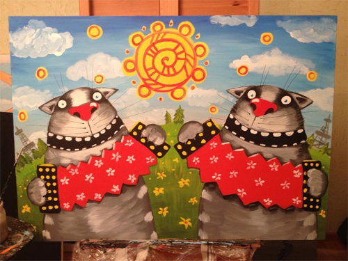 Специально для нового life-style центра «Солнечный», достраивающегося в газовой столице России – Новом Уренгое, известный художник, работающий под псевдонимом Вася Ложкин, создал серию картин в собственном неповторимом стиле