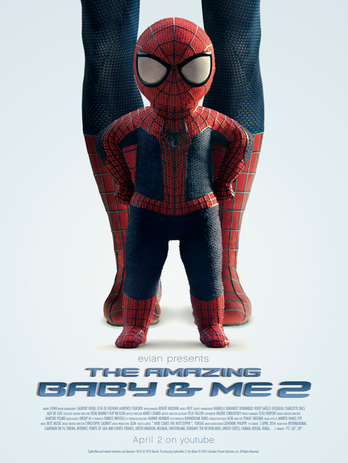 Evian и BETC сняли продолжение популярной вирусной кампании «Baby&me». На этот раз вы увидите не просто малыша, а мини-копию супергероя комиксов Человека-паука