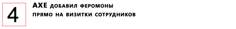 Более десяти лет бренд AXE и его Axe Effect были синонимами непреодолимого притяжения, их провокационные ролики становятся рекламными хитами, но в этот раз они превзошли самих себя и добавили феромоны прямо на визитки сотрудников.
