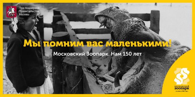 Наружная реклама будет размещена на двадцати остановочных павильонах «Мосгортранса» и двадцати щитах 6х3. Видеоролики будут демонстрироваться на семи видеоэкранах и телеканале ТВЦ. Слоган кампании гласит: «Мы помним вас маленькими! Московскому зоопарку 150 лет».