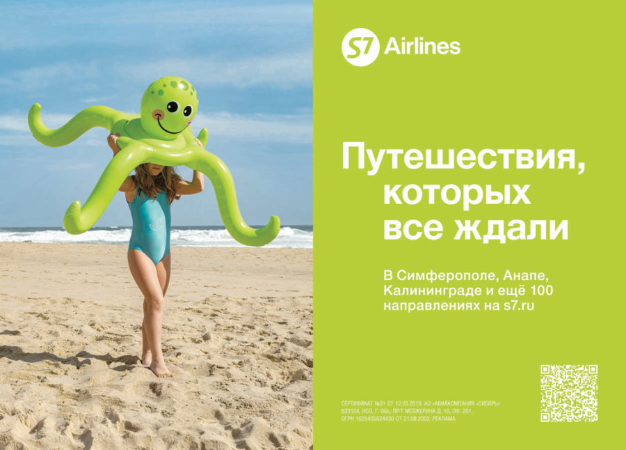 S7 Airlines запустила летнюю рекламную кампанию, рассказывающую о российских летних маршрутах и призывающую покупать билеты в места, подходящие для разного типа отдыха: морского, природного и городского. Об этом рассказали в пресс-службе авиаперевозчика.