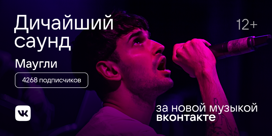 Социальная сеть «ВКонтакте» запустила кампанию в поддержку своей музыкальной платформы. Акцент в рекламе сделан на новых исполнителей — everthe8, Ma Rose, TIHOTIHO, Андреграунд, Арсений Креститель, ДК Космос, Макбет и Маугли. В официальных сообществах музыкантов не больше 10 тысяч подписчиков, а у некоторых это число не доходит и до 200 человек.