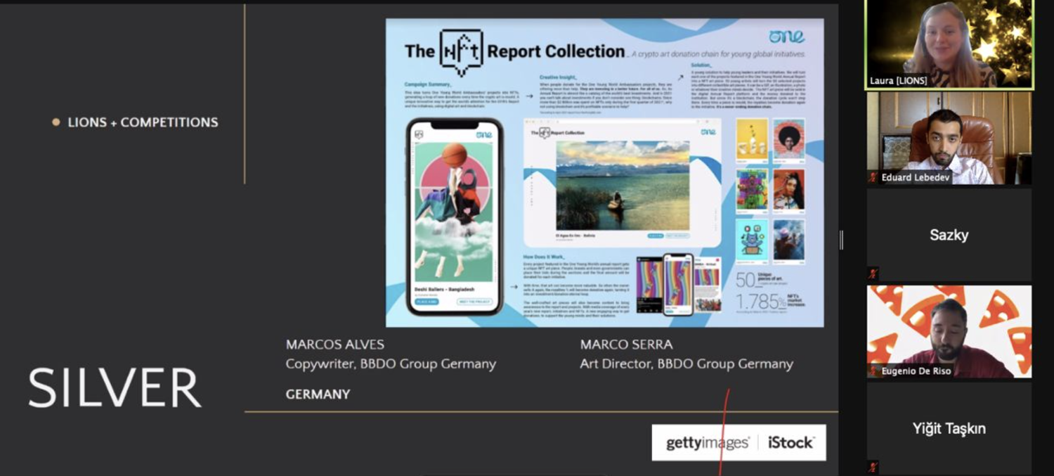 2. Есть мнение, что лучше не выбирать идеи на поверхности. Те,которые вы придумали в первые часы после брифинга. Но увы и ах! Под вашиаплодисменты: серебро за NFT Report Collection. Ребята решили переделать отчетиз 180 страниц и продать его через NFT. Почему именно эта технология? Потомучто хайп. Есть ли тут коммуникационное сообщение или инсайт? Ну-у-у, нет.