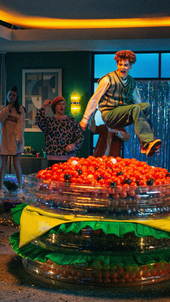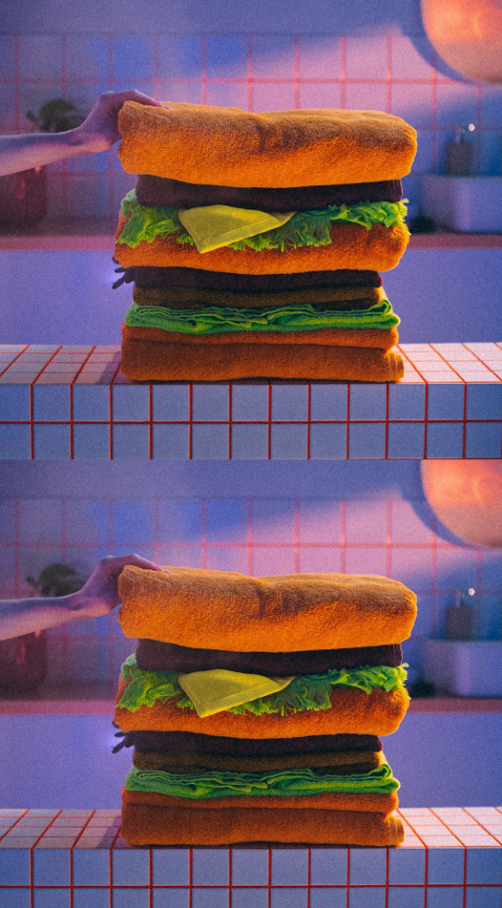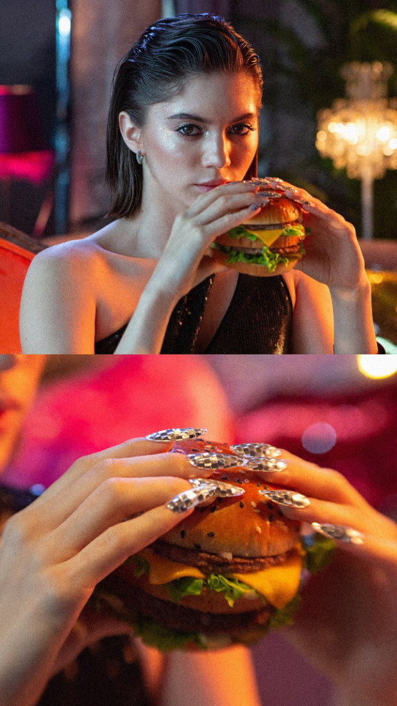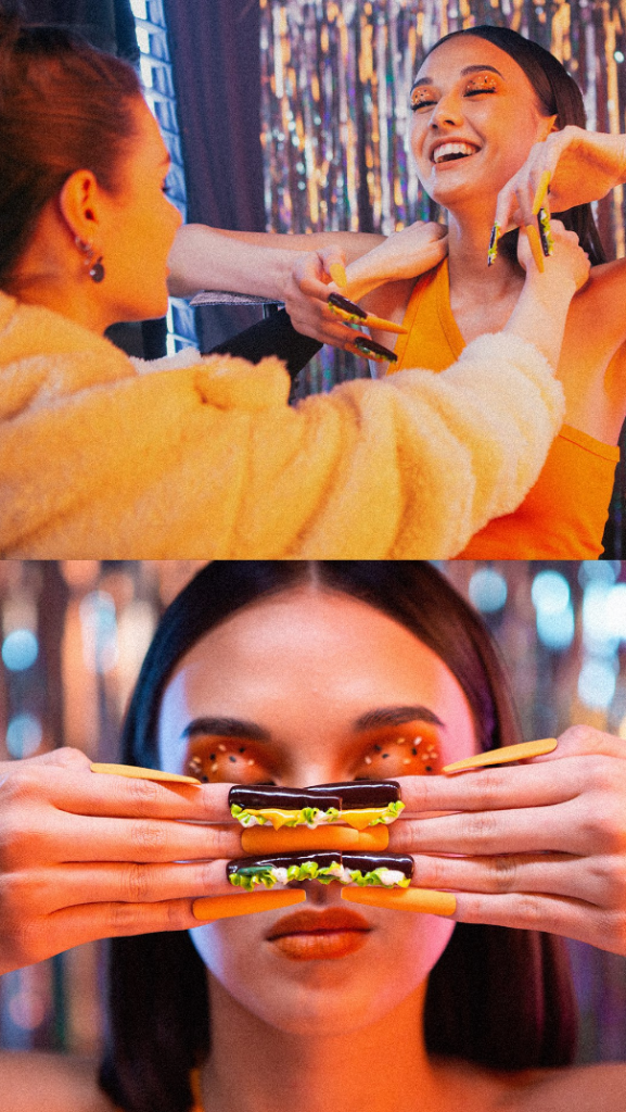В новом рекламном ролике команда «Родной речи» показала «Биг Хит» с другойстороны — бургер как модный тренд. В каждой сцене обычные предметы принимаютвид бургера: «Биг Хит» сложен стопкой из аудиокассет, полотенец и браслетов;его цвета мы видим в узорах на маракасах, в маникюре и на шнурках.