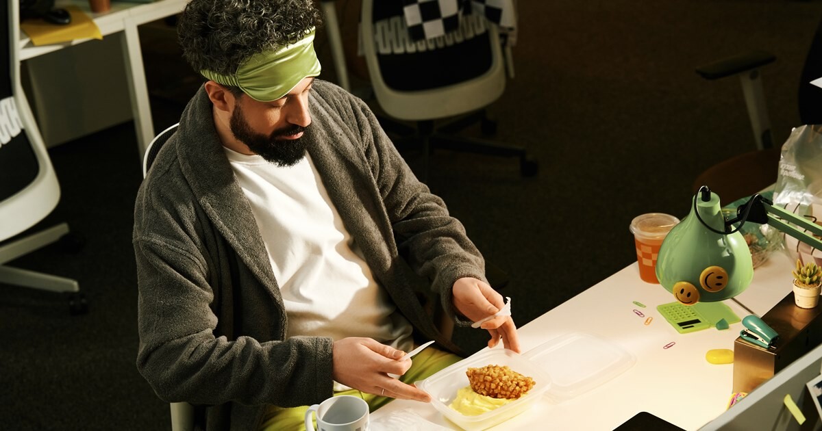 Главный герой видеоролика — офисный сотрудник, который заказывает на обедсвое любимое блюдо — котлету с картофельным пюре. Как только он открываетупаковку с едой, «телепортируется» с рабочего места к себе домой и меняеткостюм на халат. Рекламная кампания представлена в формате 360, на всех онлайн-и офлайн-площадках.