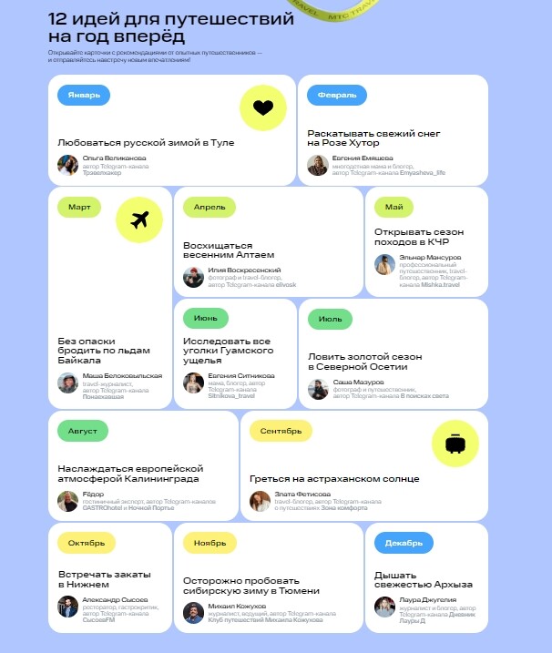Сервис MTC Travel представил проект «Календарь путешествий», в рамках которого инфлюенсерыподелились направлениями для поездки по России в разное время года.