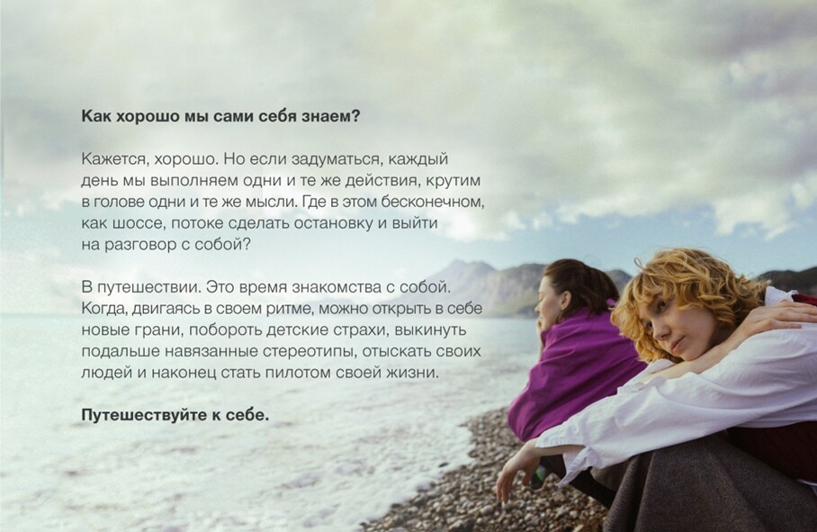 По сюжету клипа путешествие девушки проходит через лесные тропы, желтыестепи и каменистые пляжи. «Оказавшись в таких местах, хочется наконец-товыдохнуть, замедлиться и задать себе те самые вопросы, на которые обычно нехватает времени», — объяснили в пресс-службе S7 Airlines.