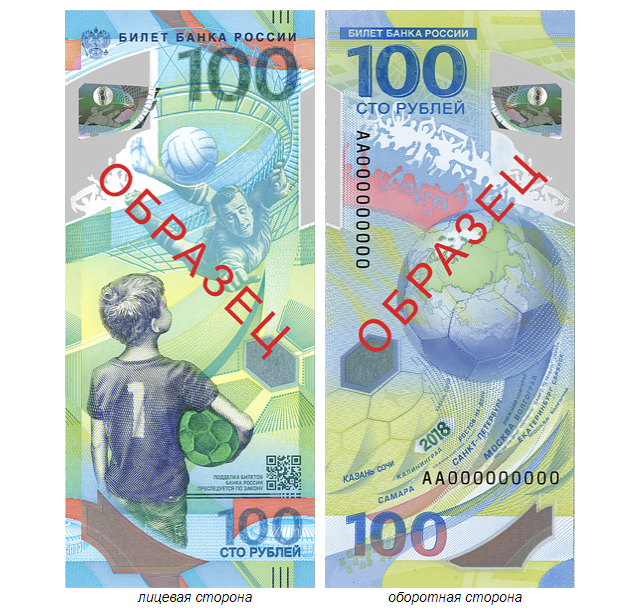 Центробанк выпустил памятные банкноты номиналом 100 руб. к чемпионату мира по футболу-2018, сообщается на сайте банковской организации. На купюре изображен легендарный советский голкипер Лев Яшин.