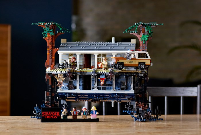 Набор состоит из героев фильма (Одиннадцать, Шериф, Лукас, Майк и др.) и дома Байеров. У дома две версии — из обычной и параллельной реальностей. Конструкцию можно переворачивать, меняя место действия. Персонажи и дом в параллельном мире — в перевернутом состоянии (фиксируются крепежами).