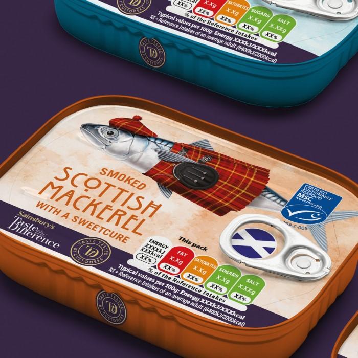 Шотландская скумбрия на то и шотландская, чтобы носить килт в традиционную клетку. Упаковка консервов Sainsbury’s от BrandMe с юмором обыгрывает ценности бренда и выделяет продукт на фоне конкурентов.