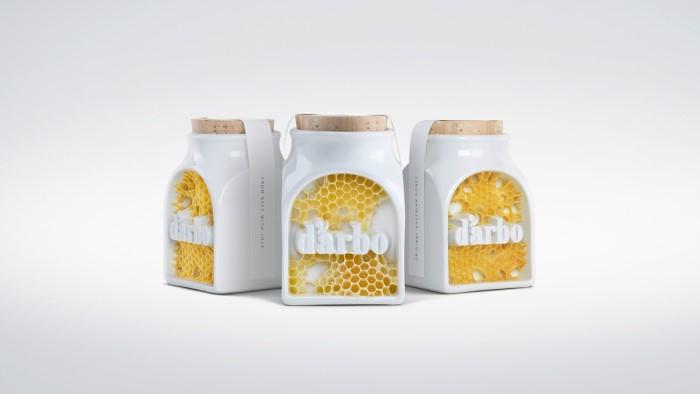 К созданию упаковки для меда d’arbo приложила руку сама природа. Чтобы продемонстрировать уникальность австрийского меда, команда Demner Merlicek & Bergmann разработала дизайн банки, которую можно вставить в рамку для улья. Его жильцы и потрудились над уникальными узорами.