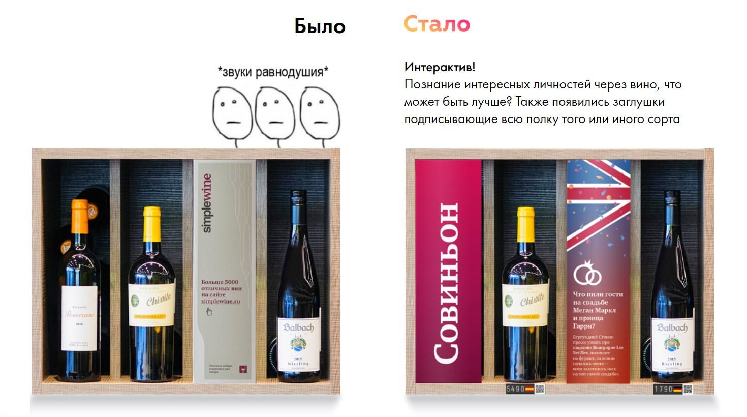 Судя по опубликованным вариантам, сбивать пафос SimpleWine предлагается за счет шутливых подвесок с подсказками о регионах, интересными особенностями вина, советами по его сочетаемости и забавными фактами.